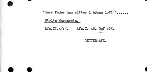 //// "Herr Peder han sitter i högan loft ...... //// Stolts Margareta. //// Afz.II.42:2. Afz.I. 48. DgF 360. //// GEIJER-AFZ. ////