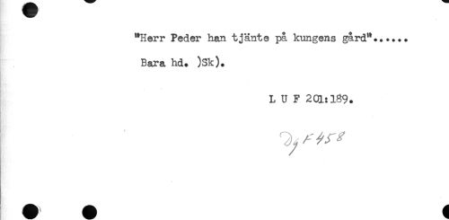 //// "Herr Peder han tjänte på kungens gård"...... //// Bara hd+ )Sk). //// L U F 201:189. ////