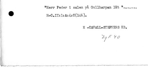 //// "Herr Peder i salen på Gullharpan lät ..... //// W H-C.II:1:A:4:C(146). //// ! H -CAVALI^STEPHENS KB. //// j : ^ ^ ////