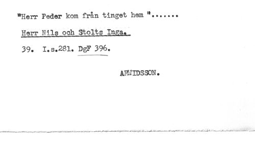 //// "Herr Peder kom från tinget hem //// Herr Nils och Stolts Inaa. //// 39. I.s.281. DgF 396. //// AHIIDSSON. ////