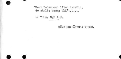 //// **Herr Feder och liten Kerstin, //// de skulle hemma bli**....... //// nr 78 A. DgF 109. //// _ —, //// SÄWE GOTL/^IDSKA VISOR. //// ^ ^ # ////