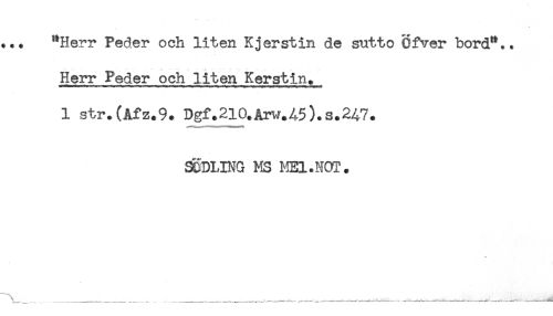 //// ... "Herr Peder och liten Kjerstin de sutto Cfver bord".. //// Herr Peder och liten Kerstin. //// 1 str.(Afz.9. Dgf.2l0.årw.A5).s.247* //// S^DLING MS ME1.N0T. //// ^______ ______^___.____;—_____—.— ////