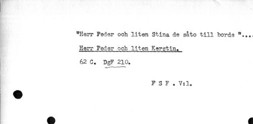//// "Herr Peder och liten Stina de såto till bords //// Herr Peder och liten Kerstin. //// 62 C. DgF 210. //// F S F . V:l. //// fr^ ////