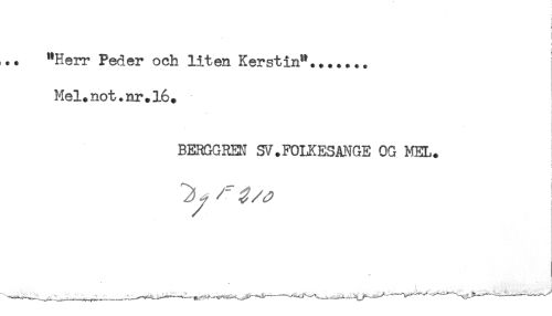 //// i //// i //// t //// "Herr Peder och liten Kerstin"....... //// Mel.not.nr.16. //// BERGGREN SV.FOLKESANGE OG MEL. //// i //// t ////