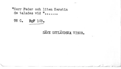 //// I //// ! //// "Herr Peder och liten Kerstin //// de talades vid ...... //// ?e C. DgF 10. //// ) //// SÄVE GOTLÄNDSKA VISOR. //// < //// ! //// { ////