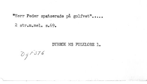 //// "Herr Peder spatserade på golfvet"..... //// 2 str.ia.mel. s.69. //// DYBECK MS FOLKLORE ////
