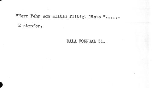 //// "Herr Pehr som alltid flitigt läste "...... //// 2 strofer. //// DALA FORMSAL 31. ////