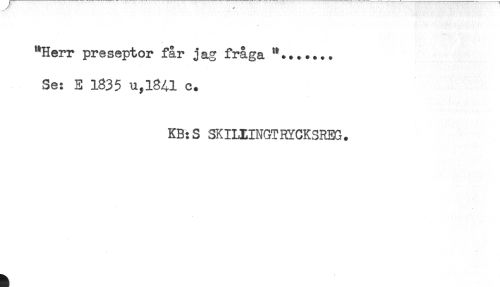 //// "Herr preseptor får jag fråga //// Se: E 1835 u,l841 c. //// KB:S SKILIINGTHYCKSREG. ////
