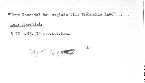 //// "Herr Rosendal han seglade till främmande land^*...... //// Herr Rosendal. //// B 78 s.59. 15 str.not.kom. //// Rå. //// H //// [ ////