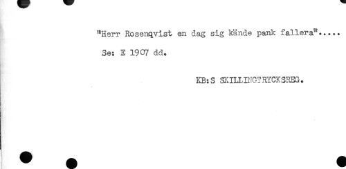 //// "Herr Rosenqvist en dag sig kände pank fallera'*..... //// Se: E 1907 dd. //// Rpi //// KB:S SKIHINCTRYCKSREG. ////