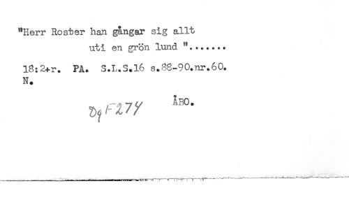 //// "Herr Roster han gängar sig allt //// uti en grön lund //// l8:2+r* PÅ. S.L.S.16 s+88-90.nr.60. //// N. //// i,,, 7/ ////