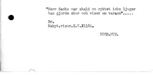 //// "Herr Säcks var skald om ryktet icke ljuger //// han gjorde skor och visor om varann"..... //// Dr. //// Mskpt.visor.E.U.3ll84+ //// NORD.ms. //// ............. ___ ////