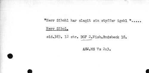 //// "Herr Sibohl har slagit sin styffar igehl //// Herr Sibol. //// sid.383. 12 str. DGF 2+Visb.Rudebeck 13. //// ___- //// AHM.MS Vs 2:3. ////