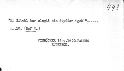 //// i //// i //// "Hr Sibohl har slagit sin Styffar igehl"...... //// nr.18. (DgF 2.) //// t //// VISrnCKER 15-0.1600-T ALENS //// RUDEBECK. //// L //// < //// i //// ä ! ////