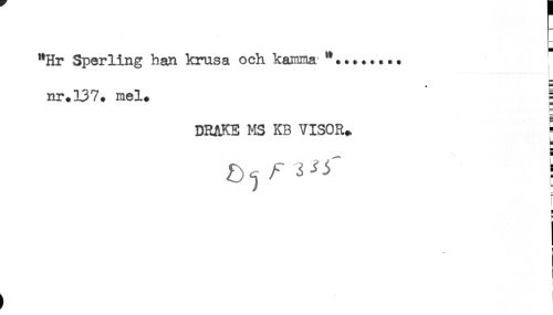 //// "Hr Sperling han krusa och kamma //// # r* //// nr.137. mel. S //// DRAKE MS KB VISOR* ! //// F //// ! //// t //// [ //// j ////