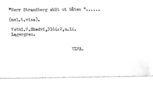 //// "Herr Strandberg sköt ut båten //// (mel.t.visa). //// V stml .V.Skedvi,3164:2 ^ s.14. //// Lagergren. //// ULMå. ////