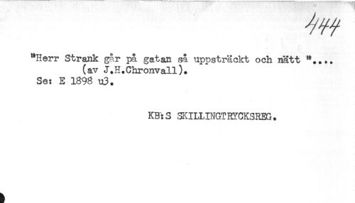 //// "Herr Strank g§.r på gatan så uppsträckt och nätt //// (av J.H.Chronvall). //// Se: E 1898 u3. //// KBiS SKILUNGTRYCKSREG. ////