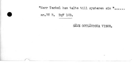 //// "Herr Terkel han talte till systeren sin //// ^ nr.78 B. DgF 1C9. //// * //// - //// SÄWE GOTLÄNDSKA VISOR. //// * //// L_______ ////