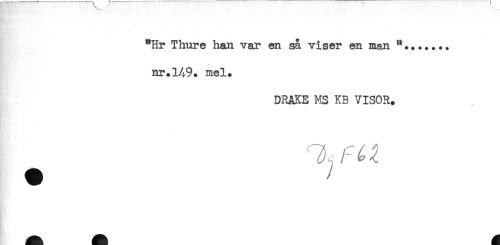 //// K'.. //// - //// "Hr Thure han var en sa viser en man //// nr.149. mel. //// h ' //// - //// DRAKE MS KB VISOR. //// * ////