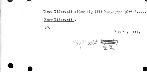 //// "Herr Tidervall rider sig till konungens gård "..... //// Herr Tidervall . //// 29. //// F S F . V:l. ////