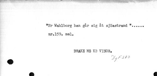 //// "Hr Wahlborg han gar sig åt sjöastrand "...... //// nr.159. mel. //// DRAKE MS KB VISOR. ////