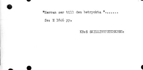 //// "Herran ser till den betryckta //// Se: E 1846 yy. //// KB:S SKILLINGTHYCSKHEG: ////