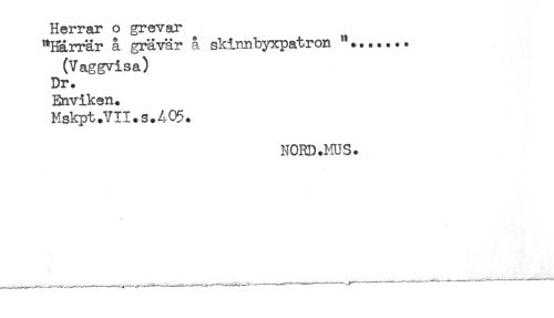 //// Herrar o grevar //// "Härrär å grävär å skiimbyxpatron "....... //// (Vaggvisa) //// Dr. //// Enviken. //// Mskpt.VII.s.405. //// NORD.MUS. ////