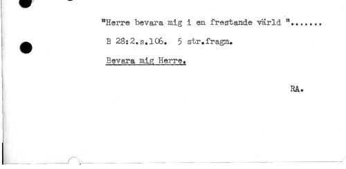 //// "Herre bevara mig i en frestande värld ^....... //// ^ B 28:2.s*106. 5 str.fragm. //// Bevara mi^ Herre. //// RÅ. ////
