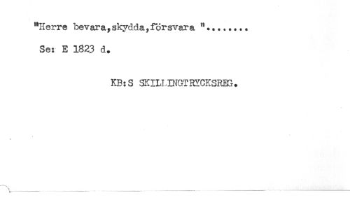 //// "Herre bevara,skydda,försvara "........ //// Se: E 1823 d. //// KB:S SKIHINGTRYCKSRBG. //// * //// \ .. ..... ////