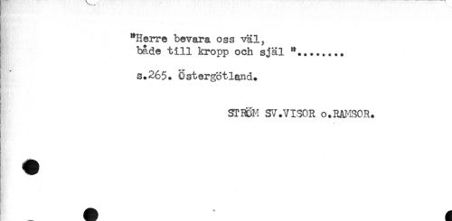 //// "Herre bevara oss väl, //// både till kropp och själ *........ //// s.265. Östergötland. //// STHRM SV.VI30R o.RAI^SOR. ////