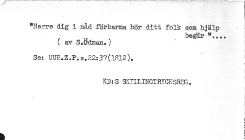 //// "Herre dig i nåd förbarma hör ditt folk som hjälp //// , .. . begär".... //// ( av S.Cdman.) //// ! //// Se: UUB.Z.P.s.22:37(1812). //// KB:S SKILLINGTRYCKSRSR. //// i //// t. //// i //// ; ////