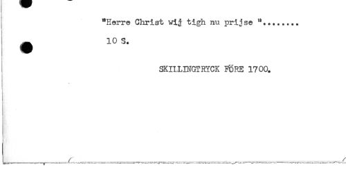 //// "Herre Christ wij tigh nu prijse "........ //// ^ 10 S. //// SKIILINGTRYCK FtRE 1700. //// ^ , .......... .............-__„,....... ////