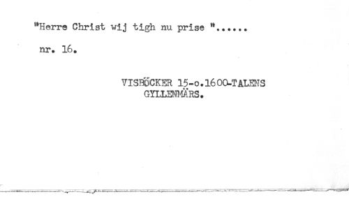 //// "Herre Christ wij tigh nu prise //// nr. 16. //// VISBOCKER 15-o. 16 OO-T ALENS //// GYLLENMÄRS. //// * ////