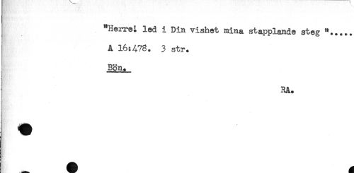 //// "Herrei led i Din vishet mina stapplande steg "..... //// A 16:478. 3 str. //// Bön. //// RA. ////