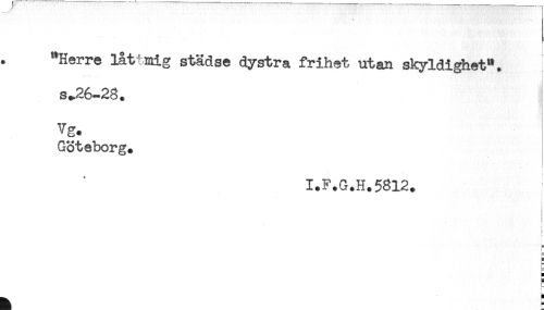//// "Herre låttmig städse dystra frihet utan skyldighet". //// * //// s.26-28. //// VS. //// Göteborg. //// I.F.G.H.5812. //// = ////