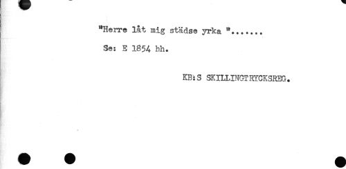 //// "Herre låt mig städse yrka "....... //// Se: E 1854 hh. //// KB:S SKILUNGTRYCKSREG. //// t //// + ////