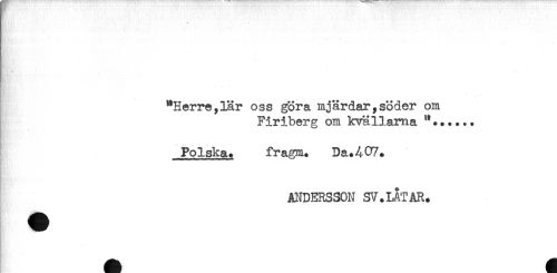 //// "Herreylar oss göra mjärdar,söder om //// Firiberg om kvällarna "....*. //// - //// - //// .... .. ,. .... //// Polska. fragm. Da.407. //// ANDERSSON SV.LAT AR. ////