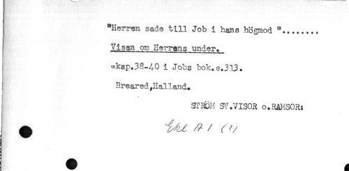 //// "Herren sade till Job i hans högmod //// Visan om Herrans under. //// =kap.38-A0 i Jobs bok.s.313. //// Breared,Halland. //// STRÖM SV.VISOR o.RAMSOR: ////
