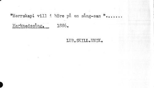 //// ' < //// *^^errskap^ vill i höre på en sång-san ............i //// ..... ...... * //// Marknadssång. 1886+ //// - //// - //// LUB.SKILL.UNIK. ////
