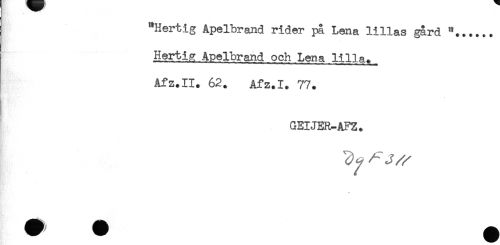 //// y * //// "Hertig Apelbraind rider på Lena lillas gård "...... //// Hertia Apelbrand och Lena lilla. //// Afz.II. 62. Afz.I. 77. //// GEIJER-AFZ. //// ^ A"J^ ////