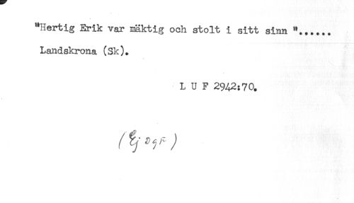 //// "Hertig Erik var mäktig och stolt i sitt sinn "...... //// Landskrona (Sk). //// L U F 2942:70. ////
