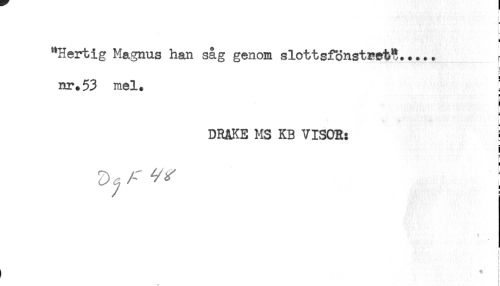 //// L //// ^ //// L //// "Hertig Magnus han såg genom slottsfönstret"..........r //// — //// nr. 53 mel. ! //// H //// : //// ? //// DRAKE MS KB VISOR: ! //// [ //// i //// < //// i ////
