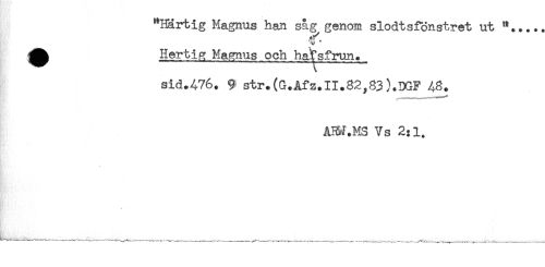 //// "Hartig Magnus han såg genom slodtsfönstret ut **..... //// ^ Hertig Magnus och ha^sfrun. //// sid.476. 9 str.(G.Afz.II.82,83).DGF 48. //// . //// A3H.MS Vs 2:1. //// * //// __.......^ _ ......... ^ ......^ - _ ........ ^........ ////