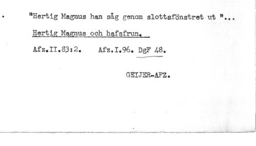 //// ! //// "Hertig Magnus han såg genom slottsfönstret ut "... //// Hertig Magnus och hafsfrun. //// Afz.II.83:2. Afz.1.96. DgF 48. //// ^HMO^^************"''**** //// GEIJER-AFZ. j //// i //// t //// < //// ! ////
