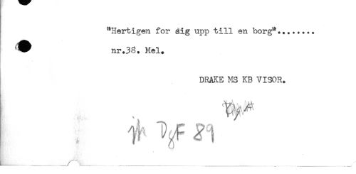 //// "Hertigen for åig upp till en borg"........ //// ^ nr.38. Mel. //// DRAKE MS KB VISOR. //// - ^ . ^ //// t* //// L_____ :____/- " _ ____ ____ ////