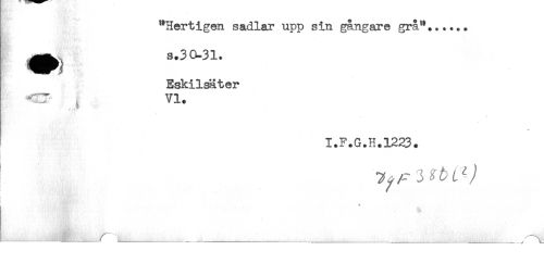 //// "Hertigen sadlar upp sin gångare grå"...... //// Eskilsäter //// ^ VI. //// I.F.G.H.1223. ////