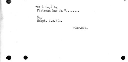 //// "Hi å ho,å ha //// Fästeman har ja ........ //// Ög. //// Mskpt. I.s.501. //// , Nonn.ms. ////