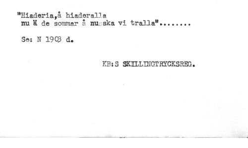 //// **Hiaderia,å hiaderalla //// nu ä de sommar å nu; ska vi //// Se: N 19Q3 d. //// KB:S SKILLDTGTRYCKSREG. ////
