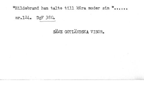 //// "Hildebrand han talte till kära moder sin *'...... //// nr.124. DgF 380. //// SAME GOTLÄNDSKA VISOR. ////