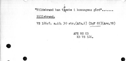 //// "HiIdebrand han tjänte i konungens gard"....... //// Hillebrand. //// VS 126:8. s.AO. 30 str.(Afz.2) (DgF 82)(Arw.78) //// AFZ MS KB //// KB VS 126. //// € H ////
